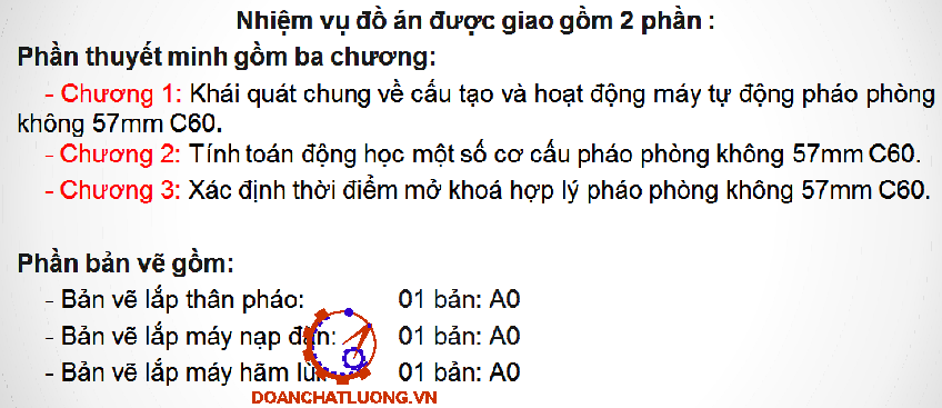 Đồ án có dung lượng 310MB. Bao gồm đầy đủ các file như: File bản vẽ cad 2D (Bản vẽ kết cấu hãm lùi pháo phòng không 57mm C60, bản vẽ kết cấu bộ phận cân bằng pháo 57mm C60, bản vẽ kết cấu nòng pháo phòng không 57mm C60, bản vẽ bản vẽ kết cấu khóa nòng, bản vẽ kết cấu máy nạp đạn pháo phòng không 57mm C60, bản vẽ kết cấu thân pháo phòng không 57mm C60, bản vẽ đồ thị tuần hoàn máy tự động… ); file word (Bản thuyết minh, nhiệm vụ đô án, bìa đồ án, bản trình chiếu bảo vệ Power point… ). Ngoài ra còn cung cấp rất nhiều các tài liệu chuyên ngành, các tài liệu phục vụ cho thiết kế đồ án, thư viện chi tiết tiêu chuẩn............ KHẢO SÁT ĐỘNG HỌC VÀ XÁC ĐỊNH THỜI ĐIỂM MỞ KHÓA HỢP LÝ PHÁO PHÒNG KHÔNG 57mm C60.