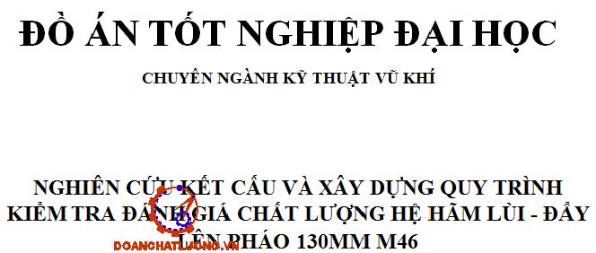 Đồ án có dung lượng 290MB. Bao gồm đầy đủ các file như: File bản vẽ cad 2D (Bản vẽ kết cấu bộ phận hãm lùi pháo 130mm M46, bản vẽ kết cấu bộ phận đẩy lên pháo 130mm M46, bản vẽ sơ đồ lực hãm lùi thủy lực φE, bản vẽ phiếu công nghệ, bản vẽ sơ đồ tính toán lực hãm lùi khi bắn… ); file word (Bản thuyết minh, bìa đồ án… ). Ngoài ra còn cung cấp rất nhiều các tài liệu chuyên ngành, các tài liệu phục vụ cho thiết kế đồ án, thư viện chi tiết tiêu chuẩn............ NGHIÊN CỨU KẾT CẤU VÀ XÂY DỰNG QUY TRÌNH KIỂM TRA ĐÁNH GIÁ CHẤT LƯỢNG HỆ HÃM LÙI - ĐẨY LÊN PHÁO 130MM M46.