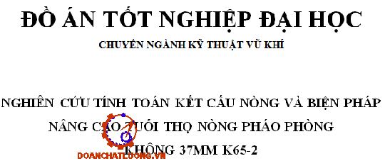 Đồ án có dung lượng 290MB. Bao gồm đầy đủ các file như: File bản vẽ cad 2D (Bản vẽ nòng pháo phòng không 37mm K65-2, bản vẽ sơ đồ tính toán tuổi thọ và biện pháp nâng cao tuổi thọ nòng pháo phòng không 37mm K65-2, bản vẽ biểu đồ áp suất và sức bền… ); file word (Bản thuyết minh, bìa đồ án, chương trình pháo phòng không 37mm K65-2, bản trình chiếu bảo vệ Power point… ). Ngoài ra còn cung cấp rất nhiều các tài liệu chuyên ngành, các tài liệu phục vụ cho thiết kế đồ án, thư viện chi tiết tiêu chuẩn............ NGHIÊN CỨU TÍNH TOÁN KẾT CẤU NÒNG VÀ BIỆN PHÁP NÂNG CAO TUỔI THỌ NÒNG PHÁO PHÒNG KHÔNG 37MM K65-2.