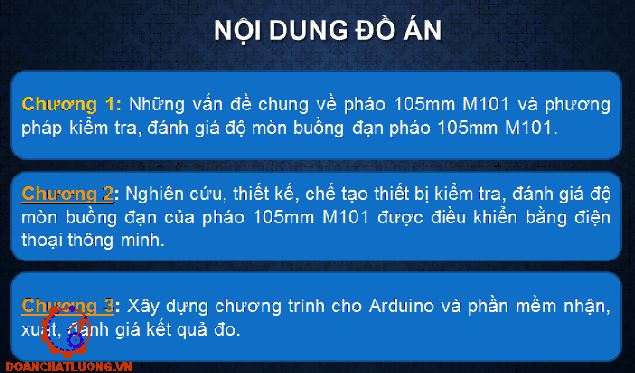 Đồ án có dung lượng 290MB. Bao gồm đầy đủ các file như: File bản vẽ cad 2D (Bản vẽ lắp thiết bị đo độ mòn buồng đạn pháo 105mm M101, bản vẽ lưu đồ thuật toán, bản vẽ sơ đồ mạch điện … ); file word (Bản thuyết minh, nhiệm vụ đồ án, bìa đồ án, bản trình chiếu bảo vệ Power point… ). Ngoài ra còn cung cấp rất nhiều các tài liệu chuyên ngành, các tài liệu phục vụ cho thiết kế đồ án, thư viện chi tiết tiêu chuẩn............ NGHIÊN CỨU, THIẾT KẾ, CHẾ TẠO THIẾT BỊ KIỂM TRA VÀ ĐÁNH GIÁ ĐỘ MÒN BUỒNG ĐẠN CỦA PHÁO 105MM M101 ĐƯỢC ĐIỀU KHIỂN BẰNG ĐIỆN THOẠI THÔNG MINH.