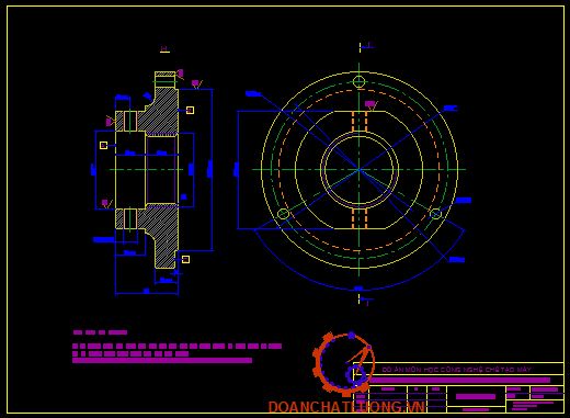 Đế mâm cặp là 1 chi tiết thuộc loại chị tiết điển hình dạng bạc, được dung nhiều trong chế tạo máy. Chi tiết có hình ống tròn, trên chi tiết có hệ thống các lỗ nhỏ để bắt lên thân máy. Lỗ ren M75x6 để lắp ráp với chi tiết khác trong máy.mặt bích chặn được cố định nới thân máy bởi 3 bulong.