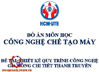 Đồ án môn học công nghệ chế tạo máy là đồ án chuyên nghành của sinh viên nghành cơ khí chế tạo máy,đồng thời đồ án này cũng là đồ án của sinh viên nghànhh cơ khí nói chung . . . . .là tiền đề hướng dẫn sinh viên giải quyết một số vấn đề tổng hợp về công nghệ chế tạo máy .sau thới gian đượi trang bị các môn lý thiết về công nghệ chế tạo máy và được tiến hành làm đồ án môn học công nghệ chế tạo máy với đề tài: "Thiết kế qui trình công nghệ gia công Thanh truyền”