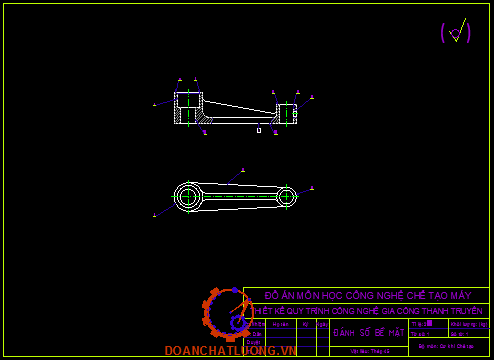 Đồ án có dung lượng 280MB. Bao gồm đầy đủ các file như: File bản vẽ cad 2D, 3D (Bản vẽ chi tiết 3D thanh truyền, bản vẽ chi tiết thanh truyền, bản vẽ đánh số bề mặt gia công, bản vẽ lồng phôi, bản vẽ khuôn đúc, bản vẽ sơ đồ nguyên công định vị, bản vẽ sơ đồ nguyên công kết cấu đồ gá, bản vẽ tính toán…); file word (Bản thuyết minh, đề tài và nhiệm vu đồ án, bìa đồ án…). Ngoài ra còn cung cấp rất nhiều các tài liệu chuyên ngành, các tài liệu phục vụ cho thiết kế đồ án, các câu hỏi khi bảo vệ........... THIẾT KẾ QUY TRÌNH CÔNG NGHỆ GIA CÔNG CHI TIẾT THANH TRUYỀN.