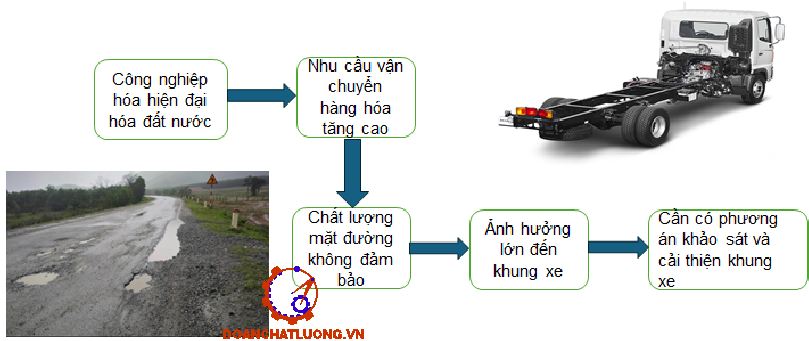 Trong bối cảnh nền kinh tế ngày càng phát triển, nhu cầu vận chuyển hàng hóa trở nên quan trọng hơn bao giờ hết. Sự mở rộng của các khu công nghiệp và hoạt động thương mại khiến các phương tiện vận tải, đặc biệt là xe tải, trở thành yếu tố then chốt trong chuỗi cung ứng. Tuy nhiên, trong quá trình vận hành, xe tải phải đối mặt với nhiều yếu tố tác động từ điều kiện địa hình và chất lượng đường xá, ảnh hưởng không nhỏ đến khả năng vận hành cũng như độ bền của khung xe. Việc đánh giá và cải tiến độ bền của khung xe không chỉ giúp nâng cao hiệu quả vận hành mà còn bảo đảm sự an toàn cho người sử dụng phương tiện. Do đó, việc mô phỏng và phân tích đánh giá độ bền của khung xe tải trong các điều kiện vận hành thực tế là một yêu cầu cấp thiết trong ngành công nghiệp ô tô.