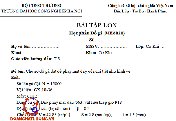 PHẦN I: PHÂN TÍCH YÊU CẦU KĨ THUẬT CỦA NGUYÊN CÔNG VÀ TRÌNH TỰ THIẾT KẾ ĐỒ GÁ