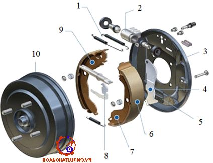 Khi không phanh: lò xo hồi vị kéo guốc phanh về vị trí nhả phanh, dầu áp suất thấp nằm chờ trên đường ống.