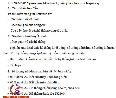 Hiện nay, các hệ thống trên xe quân sự đã có nhiều cải tiến phù hợp với tình hình thực tiễn và yêu cầu nhiệm vụ của quân đội. Do thời gian và kinh nghiệm thực tế có hạn, tôi thực hiện đề tài chỉ nghiên cứu, khai thác hệ thống điện trên xe ôtô quân sự, trình bày những đặc điểm riêng biệt về cấu tạo và nguyên lý hoạt động của hệ thống này.