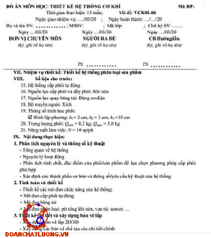 Tính toán thiết kế hệ thống băng tải phân loại sản phẩm theo chiều cao bao gồm các phần: Chọn động cơ, tính toán bộ truyền ngoài, tính toán các kết cấu trục,…