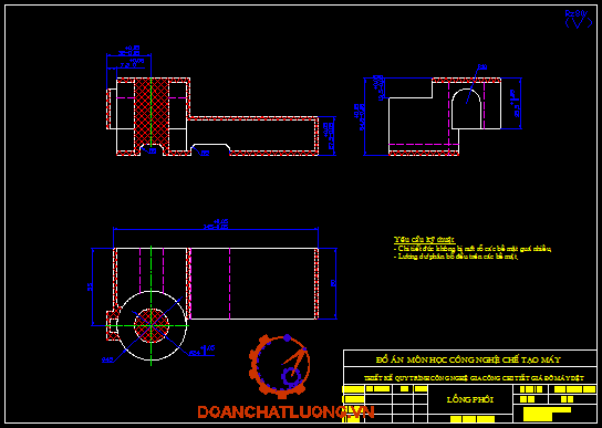 Phôi có dạng phôi đúc cấp chính xác I , khối lượng khoảng 1,7 kg, vật liệu phôi: Gang xám.Tiến trình công nghệ gia công lỗ þ25 gồm 3 bước : khoét thô, doa thô, doa tinh trên một lần gá đặt. Chuẩn định vị khi gia công lỗ þ25 là mặt bên, mặt đáy.