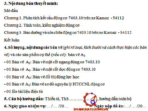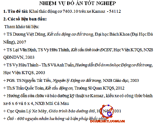 Qua thời gian học tập và nghiên cứu về chuyên ngành “Công nghệ kỹ thuật ô tô”, em được khoa tin tưởng giao cho đề tài tốt nghiệp “Khai thác động cơ 7403.10 trên xe Kamaz - 54112”.Đây là một đề tài rất thiết thực nhưng còn nhiều khó khăn.