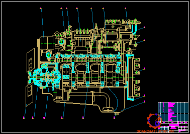 * Thân máy: Có kết cấu theo kiểu thân xy lanh hộp trục khuỷu, tạo nên sự cứng vững, ở phía dưới thân máy có hệ thống các rãnh để đưa dầu đến các bạc của trục khuỷu, trục cam và các chi tiết dẫn động, cơ cấu phối khí, đến bầu lọc dầu, bầu lọc ly tâm và máy nén khí. Các nắp trục được lắp với các vách ngang của thân máy bằng các bu lông.