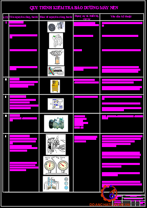 Quy trình kiểm tra bảo dưỡng máy nén như bảng 4.1.