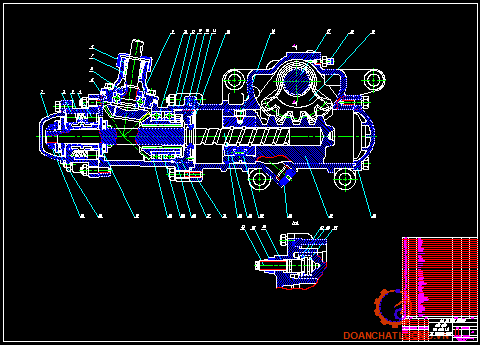 Cơ cấu lái xe KAMAZ-5410 là cơ cấu lái kiểu vít - đai ốc- thanh răng- cung răng có tỷ số truyền là 20. Cơ cấu lái bố trí liền khối với van phân phối, xi lanh lực. Kết cấu cơ cấu lái xe KamAZ-5410 xem hình 2.3. Vỏ 14 của cơ cấu lái đồng thời đóng vai trò là xi lanh lực. Bộ truyền bánh răng côn nối với trục lái thông qua một khớp các đăng. Kết cấu của bộ truyền bánh răng côn xem hình 2.4.