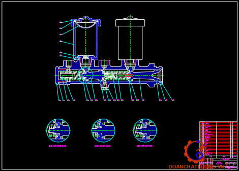 Thân xi lanh được đúc bằng gang xám, có đường kính trong xy lanh là 32+0,027 mm, có lỗ ren M10 x1- 6H để bắt van xả khí, lỗ ren M12 x1,5- 6H để lắp đầu nối đường dẫn dầu đồng thời có lỗ để lắp chốt tựa, có ưu điểm: nhỏ gọn, dễ chế tạo, dễ bảo dưỡng sửa chữa, giá thành rẻ, nhược điểm: dễ bị hỏng các lỗ ren.