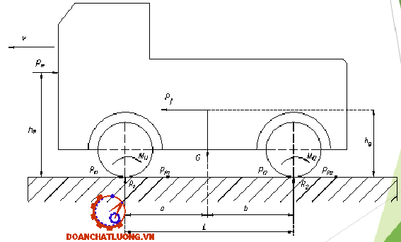 - a, b: Khoảng cách từ trọng tâm đến cầu trước và cầu sau (m).