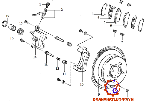 * Quy trình tháo kiểm tra bảo dưỡng cơ cấu phanh cho tất cả các bánh xe đều tương đối giống nhau sau đây là quy trình cho cơ cấu phanh phía sau.