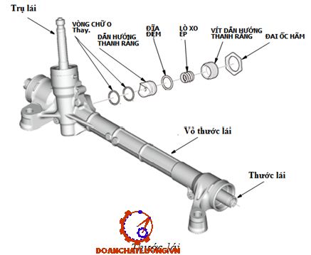 Thước lái (Steering gears):Biến đổi momen xoắn từ vô-lăng thành chuyển động tịnh tiến sang trái hoặc phải, thông qua các khớp lái để làm bánh xe chuyển hướng.