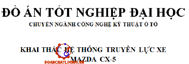 Sau thời gian làm việc liên tục, ban đầu có hơi bối rối chưa làm quen được với đề tài và mất nhiều thời gian cho việc tìm tài liệu đọc tìm hiểu nội dung của đồ án. với những kiến thức đã được học tại trường và được sự giúp đỡ rất nhiệt tình của thầy GVC: TS………………, các thầy trong khoa ô tô và các bạn đồng nghiệp em đã hoàn thành đề tài đồ án tốt nghiệp: “Khai thác hệ thống truyền lực trên xe Mazda CX-5’’.