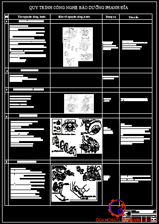 Vị trí bôi trơn: Cơ cấu doãng má phanh tay, điều chỉnh phanh tay …