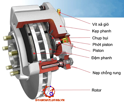 - Khe hở giữa đĩa phanh và cơ cấu phanh lớn.