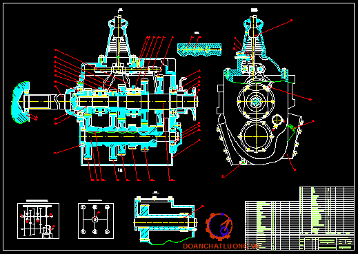 Loại hộp số: 3 trục cố định, 5 số tiến, 1 số lùi.