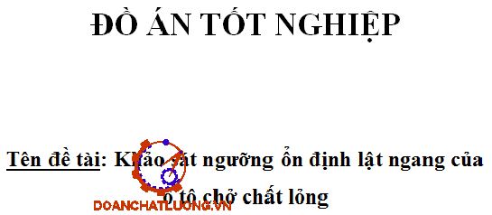 Đồ án có dung lượng 290MB. Bao gồm đầy đủ các file như: File bản vẽ cad 2D, 3D (Bản vẽ 3D chi tiết thanh đòn ngang, bản vẽ 3D chi tiết càng chữ A, bản vẽ bố trí chung xe thiết kế, bản vẽ lắp giảm chấn sau, bản vẽ lắp treo sau, bản vẽ lắp giảm chấn trước, bản vẽ lắp treo trước, bản vẽ tách các chi tiết cơ bản, bản vẽ kết quả mô phỏng, bản vẽ kết quả thí nghiệm…); file word (Bản thuyết minh, bìa đồ án, nhiệm vụ đồ án, phiếu nhận xét, chương trình mô phỏng ứng suất, chương trình thí nghiệm, ảnh chụp hệ thống treo xe thiết kế, bản trình chiếu bảo vệ Power point…). Ngoài ra còn cung cấp rất nhiều các tài liệu chuyên ngành, các tài liệu phục vụ cho thiết kế đồ án........... KHẢO SÁT NGƯỠNG ỔN ĐỊNH LẬT NGANG CỦA Ô TÔ CHỞ CHẤT LỎNG.
