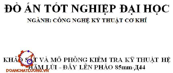 Đồ án có dung lượng 290MB. Bao gồm đầy đủ các file như: File bản vẽ cad 2D (Bản vẽ máy hãm lùi pháo 85mm - Д44, bản vẽ máy đẩy lên pháo 85mm - Д44, bản vẽ sơ đồ nguyên lý làm việc hãm lùi - đẩy lên pháo 85mm - Д44, bản vẽ quy trình công nghệ gia công cán điều tiết… ); file word (Bản thuyết minh, bìa đồ án, excel chương trình tính toán, bản trình chiếu bảo vệ Power point, video đề tài… ). Ngoài ra còn cung cấp rất nhiều các tài liệu chuyên ngành, các tài liệu phục vụ cho thiết kế đồ án, thư viện chi tiết tiêu chuẩn............ KHẢO SÁT VÀ MÔ PHỎNG KIỂM TRA KỸ THUẬT HỆ HÃM LÙI - ĐẨY LÊN PHÁO 85mm-Д44.