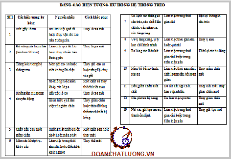 Các hiện tượng hư hỏng và cách khắc phục hệ thống treo như bảng 4.2.