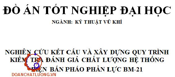 Đồ án có dung lượng 260MB. Bao gồm đầy đủ các file như: File bản vẽ cad 2D (Bản vẽ lắp hệ thống điện bắn, bản vẽ kết quả tính toán độ tin cậy cho từng cụm trong hệ thống điện bắn, bản vẽ đồ thị sác xuất làm việc, bản vẽ phiếu kiểm tra … ); file word (Bản thuyết minh, nhiệm vụ đồ án, bìa đồ án… ). Ngoài ra còn cung cấp rất nhiều các tài liệu chuyên ngành, các tài liệu phục vụ cho thiết kế đồ án, thư viện chi tiết tiêu chuẩn............ NGHIÊN CỨU KẾT CẤU VÀ XÂY DỰNG QUY TRÌNH KIỂM TRA ĐÁNH GIÁ CHẤT LƯỢNG HỆ THỐNG ĐIỆN BẮN PHÁO PHẢN LỰC BM-21.