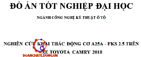 Qua quá trình làm đồ án tốt nghiệp, sau một thời gian dài nghiên cứu thực tế, các giáo trình, tài liệu chuyên ngành, cùng với sự giúp đỡ, chỉ bảo tận tình của thầy giáo : Ths ……………., các thầy giáo trong Khoa Ô tô và các đồng chí trong lớp, đồ án tốt nghiệp “Khai thác động cơ A25A - FKS trên xe TOYOTA CAMRY 2018 ” đã được hoàn thành đúng thời gian và đảm bảo chất lượng. Thông qua quá trình tìm tòi, nghiên cứu về động cơ, tôi đã: