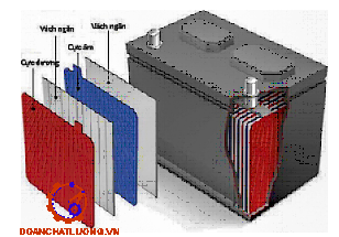 + Tấm ngăn được lồng xen vào giữa 2 tấm cực khác dấu để chống chập mạch đồng thời để đỡ chất tác dụng tránh sự rơi rụng do va đập.