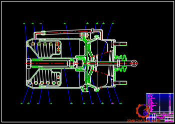 Trên hình 2.11 thể hiện một số bộ phận chính trong dẫn động điều khiển phanh bằng thủy lực, trợ lực chân không. Bàn đạp phanh bố trí kiểu treo. Xi lanh phanh chính, bầu trợ lực bố trí đồng trục thành một khối phù hợp với kết cấu bàn đạp kiểu treo. Bộ phận báo tín hiệu được gá trực tiếp lên thân xi lanh chính.