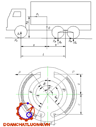 + Đối với cơ cấu phanh bánh giữa và sau: