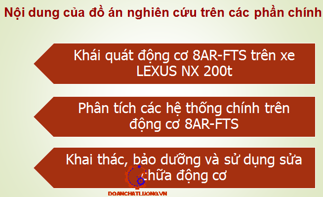 Sau 5 năm học tập tại Trường Sĩ quan Kỹ thuật Quân sự, tôi đã được giao đồ án tốt nghiệp đại học với đề tài: “Nghiên cứu, khai thác động cơ 8AR-FTS trên xe Lexus NX 200t”