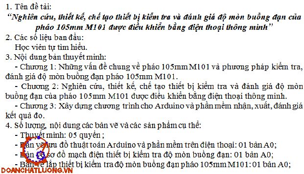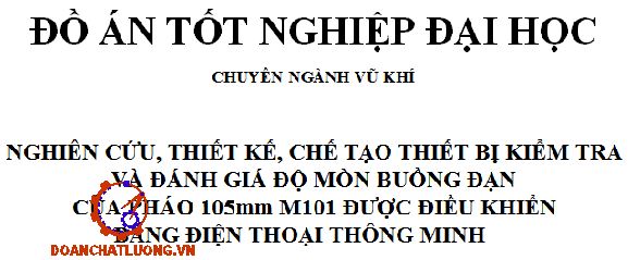 Đồ án có dung lượng 290MB. Bao gồm đầy đủ các file như: File bản vẽ cad 2D (Bản vẽ lắp thiết bị đo độ mòn buồng đạn pháo 105mm M101, bản vẽ lưu đồ thuật toán, bản vẽ sơ đồ mạch điện … ); file word (Bản thuyết minh, nhiệm vụ đồ án, bìa đồ án, bản trình chiếu bảo vệ Power point… ). Ngoài ra còn cung cấp rất nhiều các tài liệu chuyên ngành, các tài liệu phục vụ cho thiết kế đồ án, thư viện chi tiết tiêu chuẩn............ NGHIÊN CỨU, THIẾT KẾ, CHẾ TẠO THIẾT BỊ KIỂM TRA VÀ ĐÁNH GIÁ ĐỘ MÒN BUỒNG ĐẠN CỦA PHÁO 105MM M101 ĐƯỢC ĐIỀU KHIỂN BẰNG ĐIỆN THOẠI THÔNG MINH.