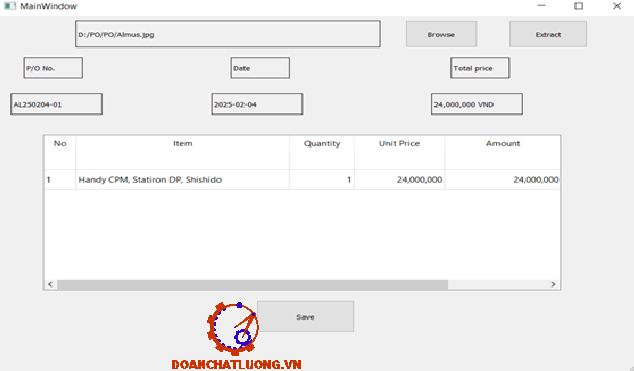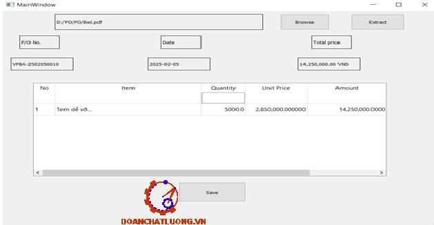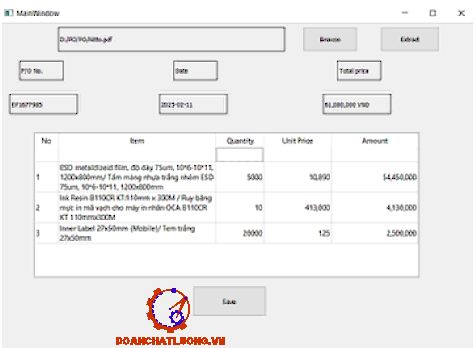 - Người dùng sử dụng ứng dụng máy tính viết bằng Qt Designer tải lên hóa đơn có sẵn.
