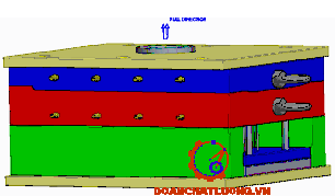 Đây là sơ đồ kết cấu chung của khuôn ép nhựa, tuy nhiên do nhóm đã dùng 1 loại vật liệu để gia công khuôn, nên kết cấu khuôn của nhóm không có tấm đỡ mà thay vào đó là 2 gói đỡ phụ để tăng độ bền cho kết cấu khuôn.