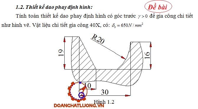 Yêu cầu: Tính toán thiết kế dao phay định hình có góc trước i>0 để gia công chi tiết như hình vẽ. Vật liệu chi tiết gia công 40X.
