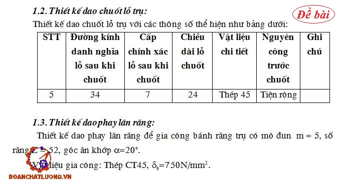 Yêu cầu: Thiết kế dao phay lăn răng để gia công bánh răng trụ có mô đun m = 5, số răng Z = 52, góc ăn khớp a=20o.