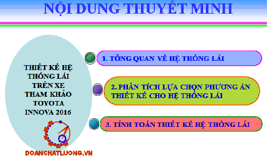 - Thiết kế cơ cấu lái bánh răng - thanh răng với trợ lực thủy lực dựa trên xe cơ sở Toyota inova.