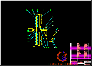 Đĩa thụ động được nồi với trục ly hợp nhờ moayơ, moayơ nối với đĩa thụ động bằng các đinh tán bằng thép. Đinh tán có dạng hình trụ, bố trí theo vòng tròn, theo kết cấu ta có đường kính qua tâm đinh tán là D =70mm. Đường kính của đinh tán d =8mm, số lượng đinh tán là: 6