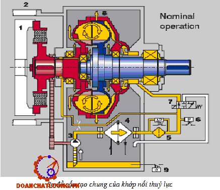 Sơ đồ nguyên lý của khớp nối thuỷ lực như hình 2.13.