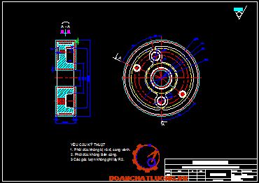 - Dung sai độ vuông góc giữa tâm lỗ ø 48+0.025 và mặt C≤1/100 = 0.01(mm)
