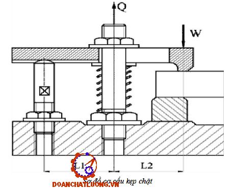 Tính lực kẹp để chi tiết không bị quay quanh Oy. Ta có phương trình cân bằng: (Xét tại vị trí B)