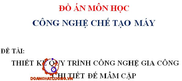 Môn học công nghệ chế tạo máy là môn học hết sức cần thiết đối với sinh viên khoa cơ khí nói chung và sinh viên ngành chế tạo máy nói riêng, giúp cho sinh viên nắm được quá trình và những yêu cầu để chế tạo ra một chi tiết cơ khí. Đồ án môn học công nghệ chế tạo máy giúp sinh viên tổng hợp những kiến thức đã học vào việc thiết kế quy trình công nghệ chế tạo một chi tiết điển hình. Để tổng hợp cũng như trau dồi kiến thức cho bản thân em được giao đồ án với nhiệm vụ đề tài: Thiết kế quy trình công nghệ gia công chi tiết Đế Mâm Cặp.