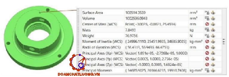 Từ bản vẽ chi tiết ta xây dựng vẽ 3D trên phần mềm NX1980 và tính được khối lượng chi tiết là m =7,8 kg.
