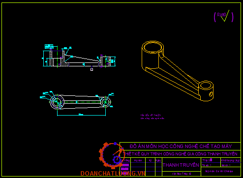 Đồ án có dung lượng 280MB. Bao gồm đầy đủ các file như: File bản vẽ cad 2D, 3D (Bản vẽ chi tiết 3D thanh truyền, bản vẽ chi tiết thanh truyền, bản vẽ đánh số bề mặt gia công, bản vẽ lồng phôi, bản vẽ khuôn đúc, bản vẽ sơ đồ nguyên công định vị, bản vẽ sơ đồ nguyên công kết cấu đồ gá, bản vẽ tính toán…); file word (Bản thuyết minh, đề tài và nhiệm vu đồ án, bìa đồ án…). Ngoài ra còn cung cấp rất nhiều các tài liệu chuyên ngành, các tài liệu phục vụ cho thiết kế đồ án, các câu hỏi khi bảo vệ........... THIẾT KẾ QUY TRÌNH CÔNG NGHỆ GIA CÔNG CHI TIẾT THANH TRUYỀN.