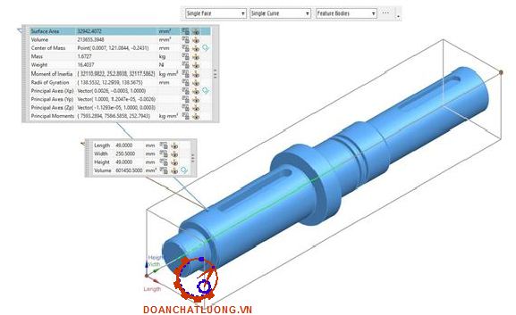 Từ bản vẽ chi tiết ta xây dựng vẽ 3D trên phần mềm NX1980 và tính được khối lượng chi tiết là m=1,67 kg.