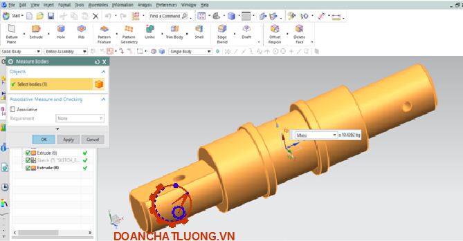 - Khối lượng của chi tiết là: 10,4262 kg (hiện thị trong ô Mass)