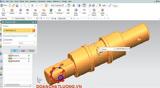 - Thể tích của chi tiết là: 1331737.0951 dmm3(hiện thị trong ô Volume)